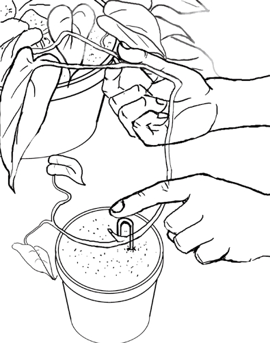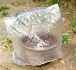 2.枝条底部插入盆中,深度为插穗长的 1/3~1/2,浇透水,罩上塑料袋移至阴凉处。