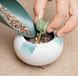 方法: 常采用盆播或育苗盘。盆播常用口径 30 厘米、深 8 厘米的浅盆。播种土以腐叶土、园土和沙的混合土为宜,须经高温消毒,保持一定的湿度。装盆时,粗土放下层,细土放上层,表面用小木板压平后播种。种子播种的深度视种类而定,小粒种子播浅一点儿,中等或大粒种子可略深一点儿,一般深 1~3 厘米即可,发芽需光照的种子不能覆土。播种完毕从盆底浸水,盆口盖上玻璃或塑料薄膜,以保持盆内湿度,置于适宜的室温中,静待发芽。