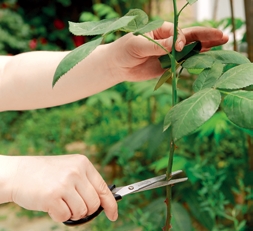 1.剪取 8~10 厘米长当年生、健壮、无病虫害枝条,剪去基部的叶及侧枝。