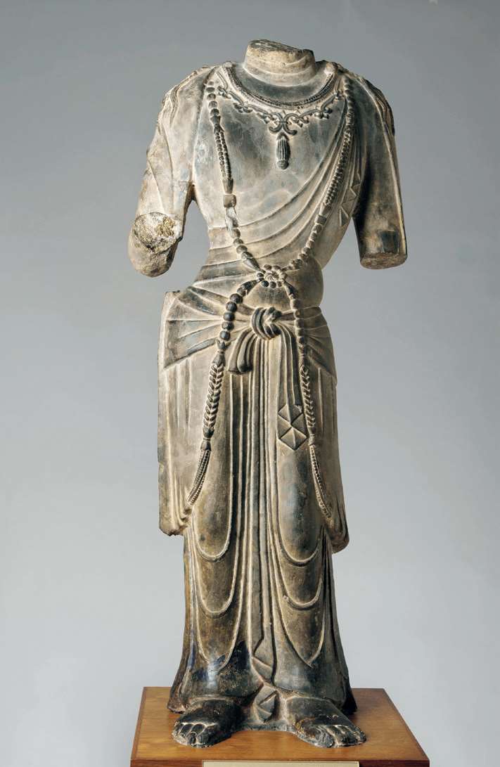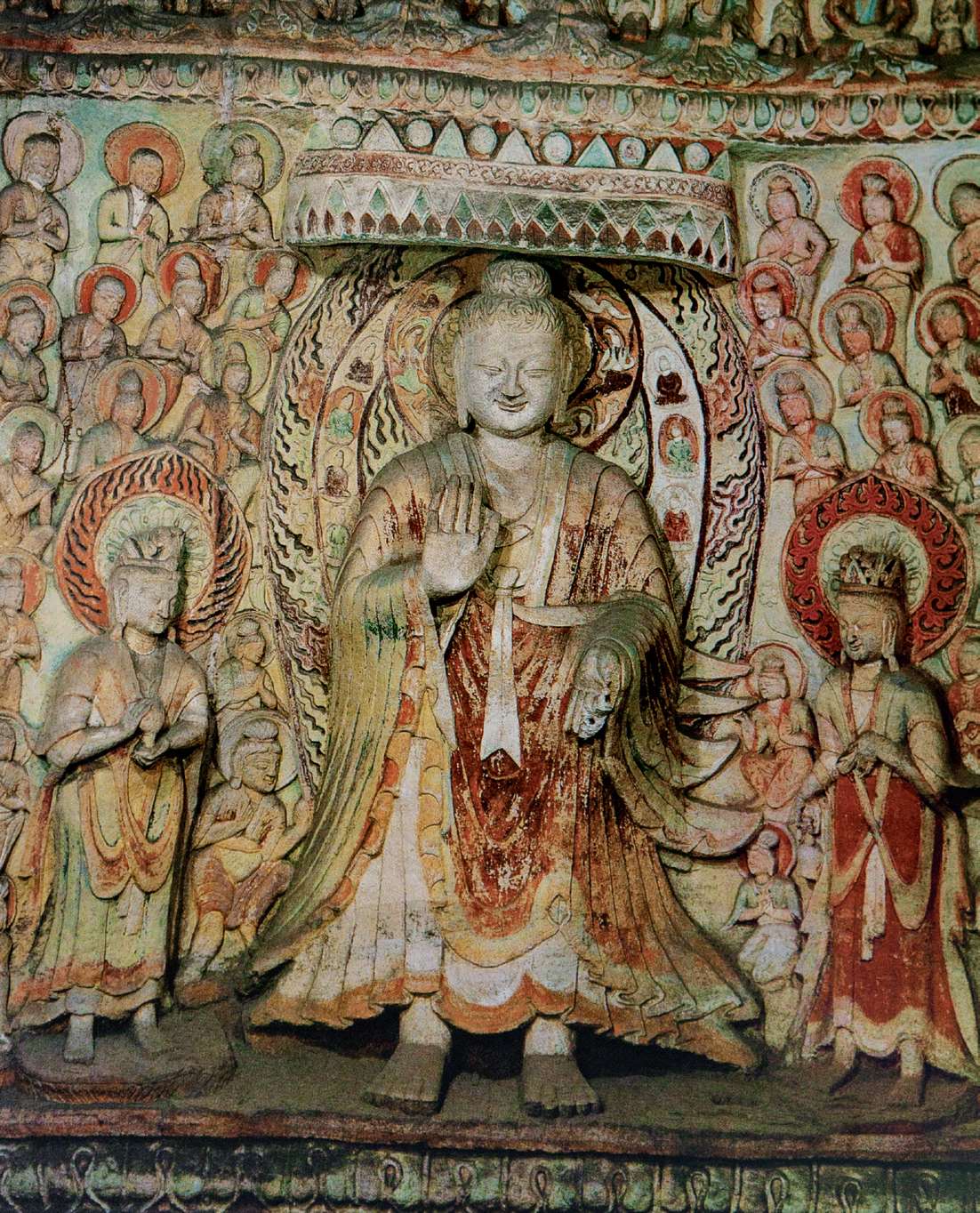 自汉末至唐(3 世纪初至 8 世纪初)的育成阶段,中国的人物再现经历了从僵滞的古代正面律逐步向自然主义和三维空间表现(图 1.17—1.19)演进的过程。这一“掌握再现”的过程堪比著名的“希腊奇迹”,即公元前 6 世纪至前 5 世纪古希腊雕像逐步从古代的呆板风格中“觉醒”的过程。