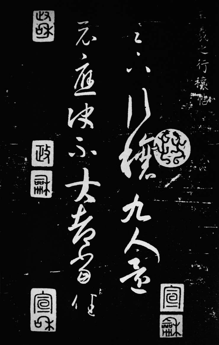 传统的中国艺术史学以古代文化典范之谱系,即张彦远(9 世纪中叶)所谓的“师资传授”为基础,讲究从典范大师的风格传统入手解读书画史。后世艺术家则通过“神会”先贤的风格传统来汲古求新。 [1] 《行穰帖》(图 1.8)笔法使转不拘,是传说中“书圣”王羲之真迹的稀有摹本,后人视其为典范大师的重要“墨迹”与个人形迹。数个世纪以来,人们反复摹拓这一范本,留存下无数碑帖刻本(图 1.14)。典范大师的风格及其“基因”变体可以被视作一种DNA印记,后世的艺术语汇皆肇始于此。而这种艺术复制过程与人类学中的谱系概念是一致的。
