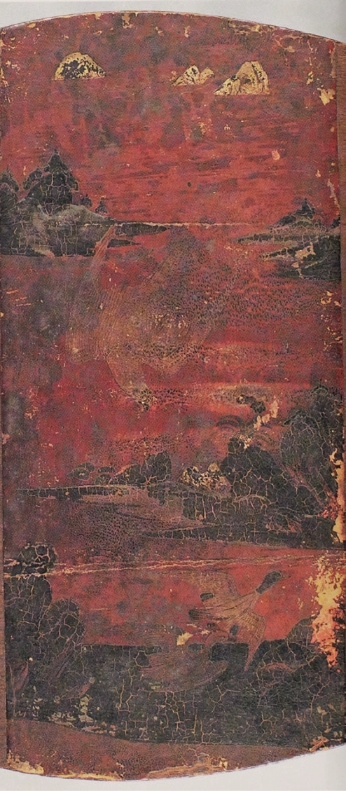8 世纪的三件琵琶拨面彩绘图景分别对应着 11 世纪山水画领袖、理论家郭熙的“三远”论: