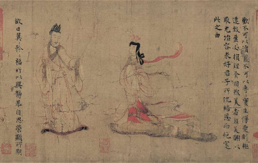 顾恺之认为,中国人物画讲求“以形写神”,即在“状物形”时追求“形似”(符合双目所见)之外,还需借助笔法来“表吾意”,从而寓物以“气”或达到“传神”。