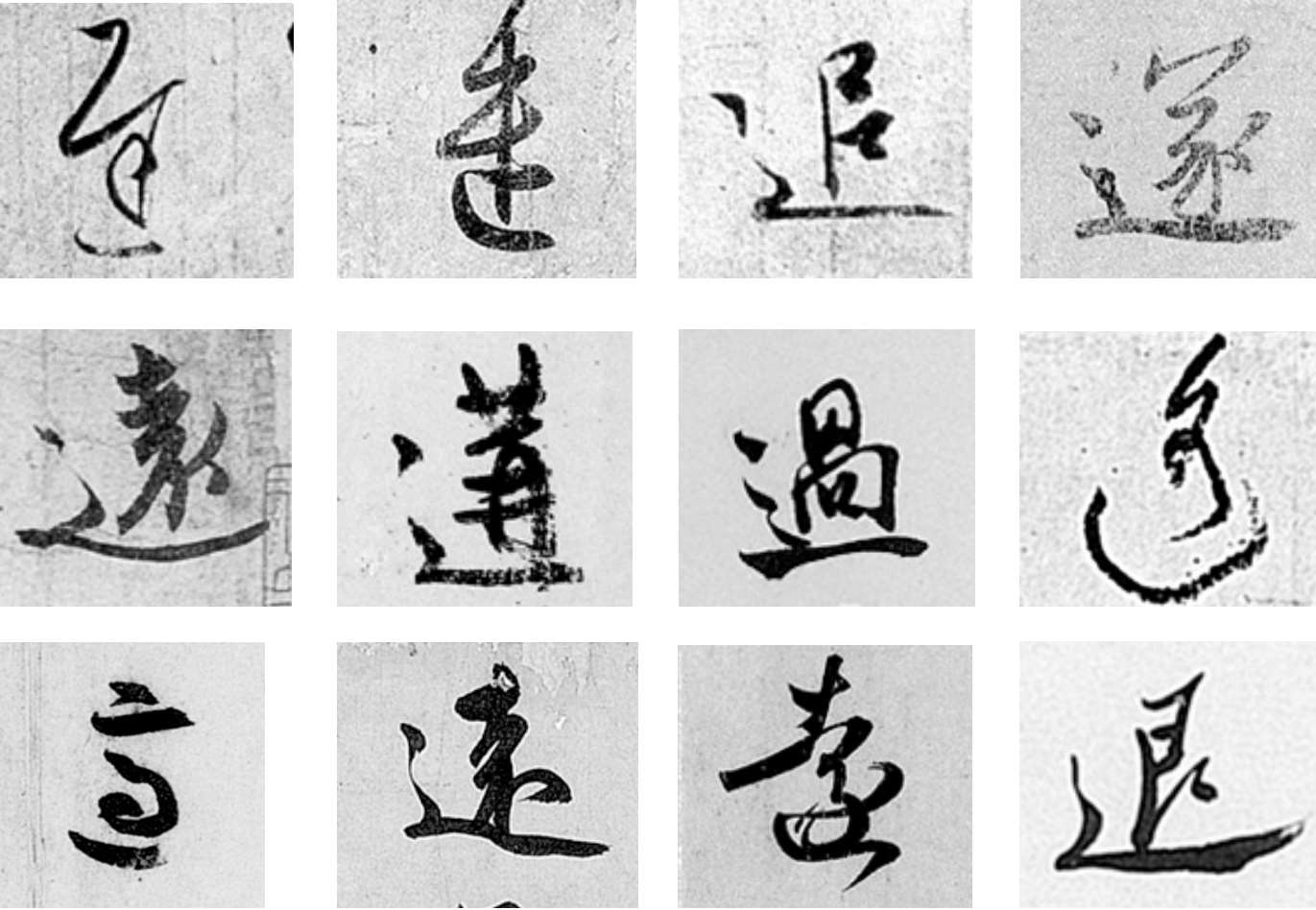 敛蓄的方法很多,以“辶”为例(图 2-12),极为灵异不测,矫变无常,学者能将各种形势一一运用纯熟,久之自有会悟之处。