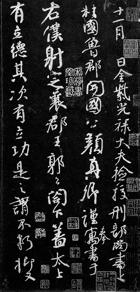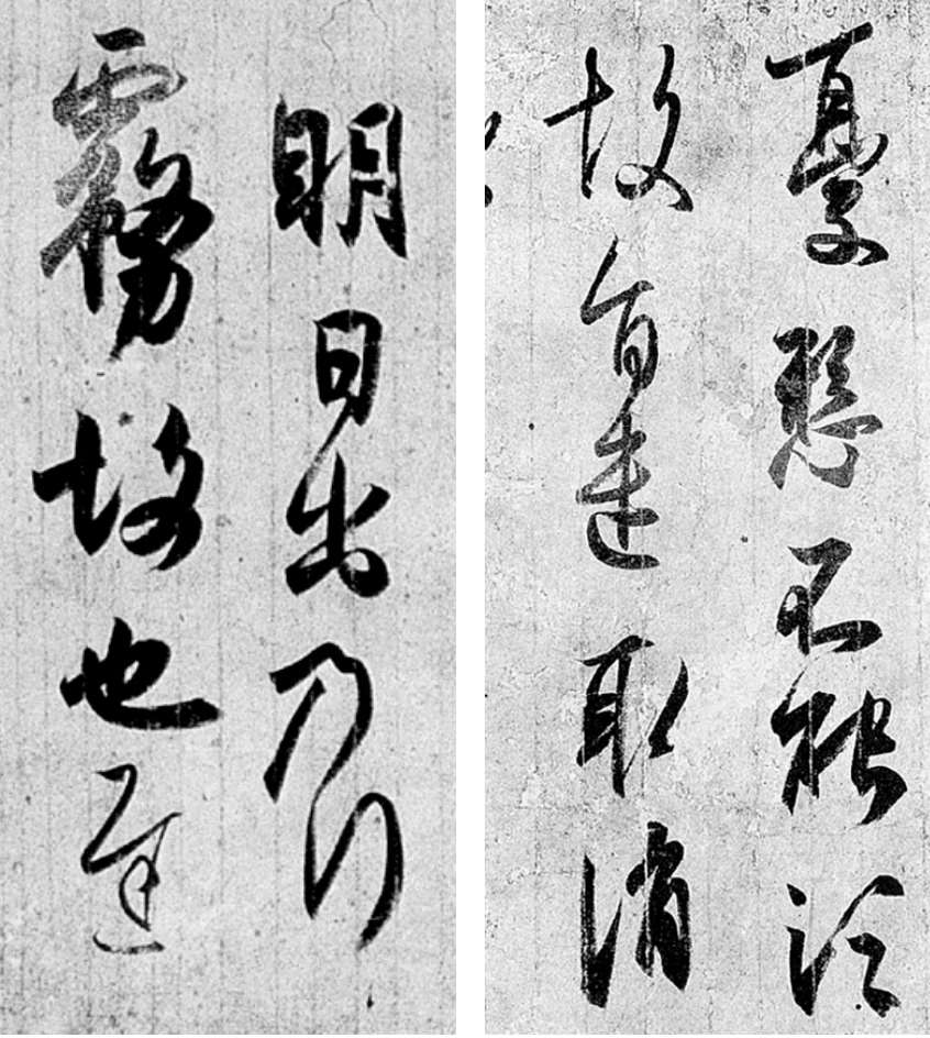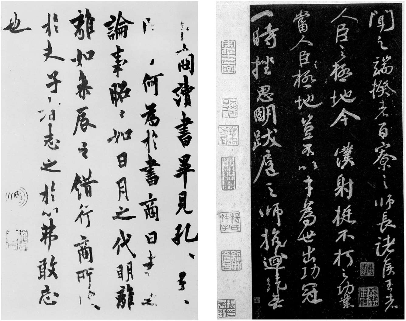 图 2-13 欧阳询《卜商帖》(左) 颜真卿《争座位帖》(右)