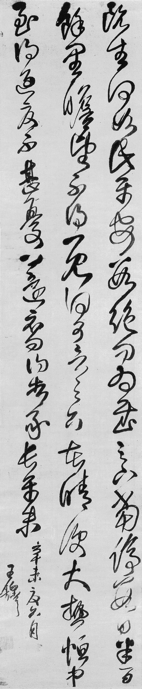 明人草书无不纵笔以取势者,觉斯则纵而能敛,故不极势,而势若不尽。非力有余者,未易语此。