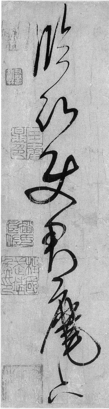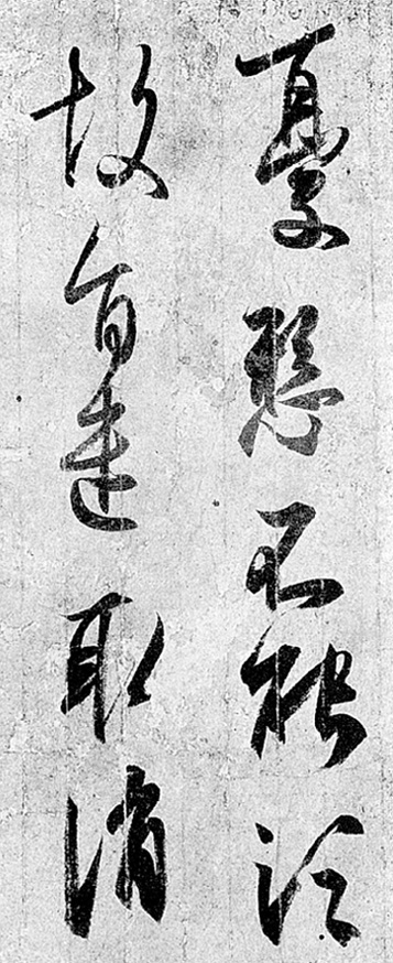 这是一种最高级的取势方法。以上诸法运用纯熟,方能臻此境界。当其落笔之后,能随机生发,因势变化,或势从内出,或势从外出;时顺时逆,忽藏忽露;开合伸缩之间,笔意纵横;俯仰向背之际,姿态生动;似奇反正,如凤翔龙翥,若断还连,似烟霏露结;或奔腾挥霍,笔势激越,如渴骥之奔泉,怒猊之抉石;或盘旋飞舞,生气勃发,似雷电之交驰,风雨之骤至;或纡徐雄壮,沉着气静,如长江之东注,有不可阻遏之势;或流利活泼,跌宕腾挪,似激泉之奔逐,有顿挫飞逸之态。真可谓“同自然之妙有,非力运之能成”,使其整幅字势,上下顾盼,左右呼应,字字连属,行行映带,打叠成一片,自然神采飞扬,气象超越。这种境界,只能心悟,难以言传,历代诸家之中,惟右军独悟此法,故其行草书往往入神,令人可喜可愕,非功力至到,法度具备,胸次廓彻,见地透脱者,难臻斯境地(图 2-24)。