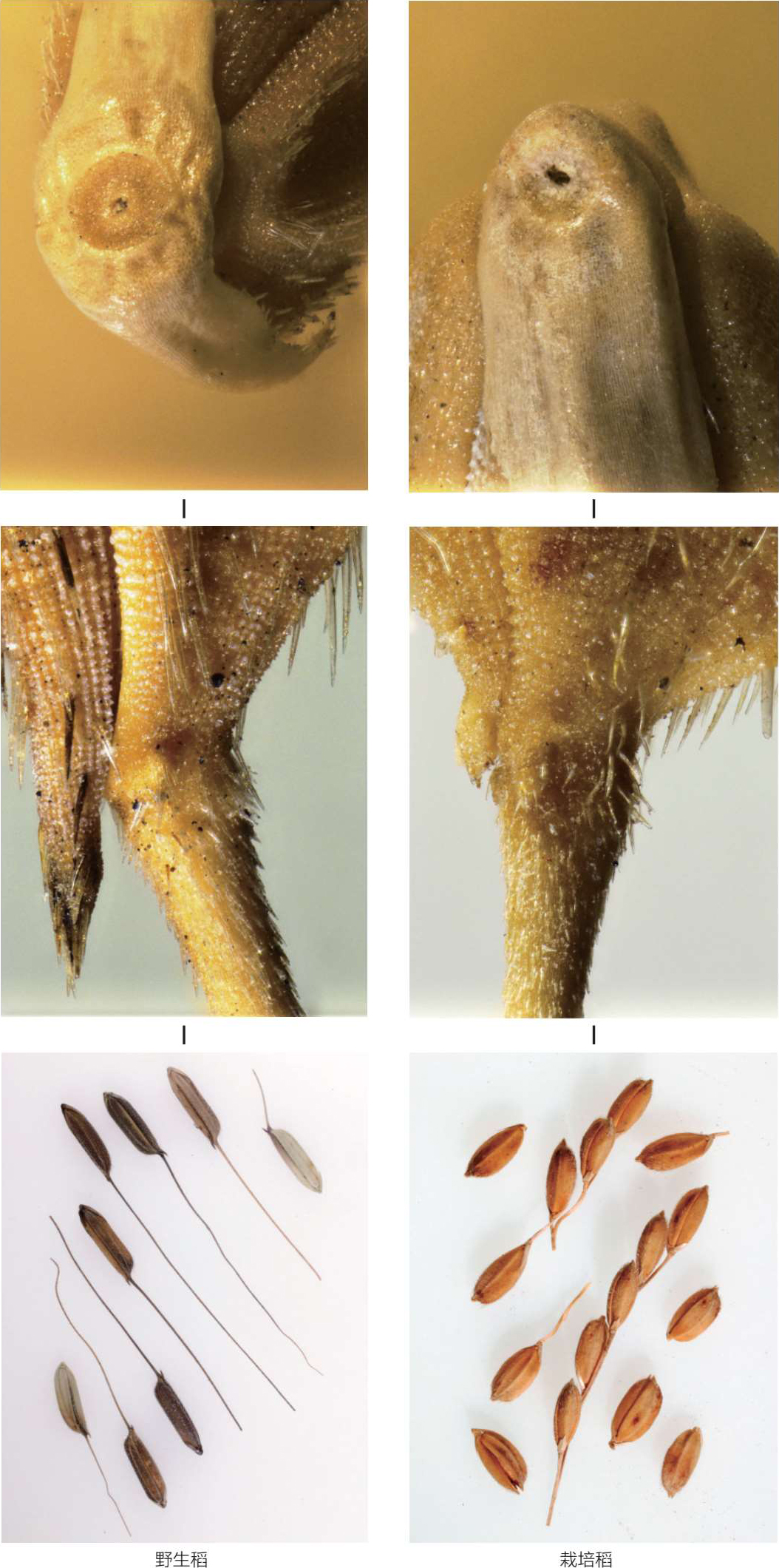 图1-7 野生稻与栽培稻的生物性状差异(著者资料)