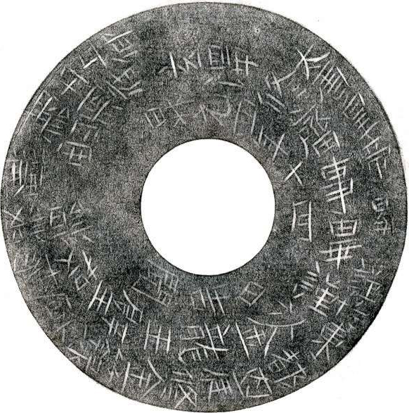图1-19 投龙玉璧拓片,其铭文曰“大唐皇帝昪谨于东都内庭修金箓道场,设醮谢土,上仰玄泽,修斋事毕,谨以金龙玉璧,投诣西山洞府。昇元四年十月日告闻”