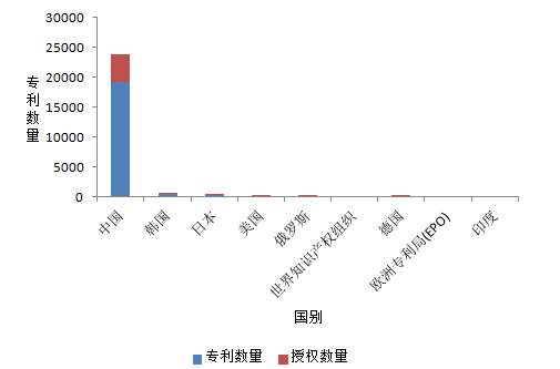 为了更加客观地反映近年来该领域专利申请的质量和数量等相关情况,对申请分布情况进行排名,中药黄连专利申请全球分布情况如图2-2-6所示。由图2-2-6可以看出,涉及黄连的专利申请以中国(含中国台湾地区)的申请量和授权量最大,分别占到总申请量和总授权量的90%以上,而在国外申请中,以韩国的申请量和授权量最多,其次是日本和美国,其中韩国在黄连领域的专利申请量为492件,专利授权量为267件,日本专利申请量为324件,专利授权量为108件,美国专利申请量为227件,专利授权量为122件。其他国家,如德国、俄罗斯、印度等国也有申请,但数量较少。