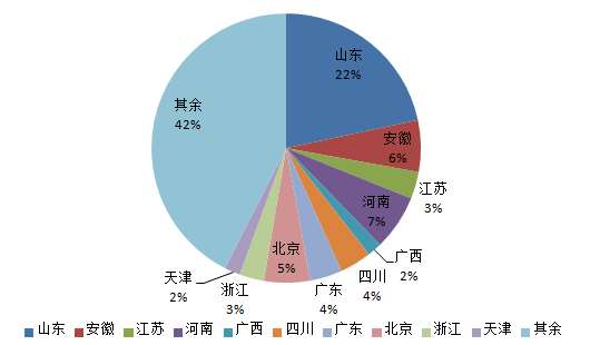 图2-2-8 川产道地药材黄连国内地区专利申请量分析