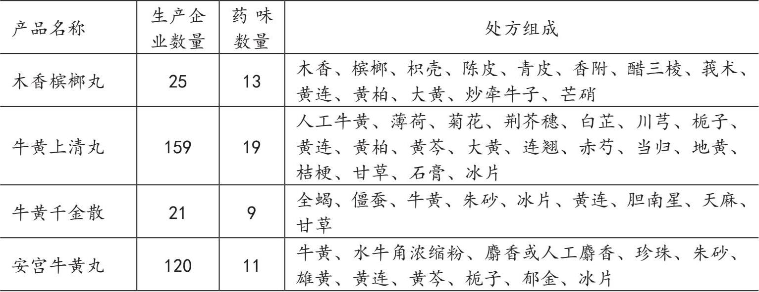 表2-2-1 黄连为主要原料的中成药情况