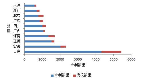 图2-2-9 川产道地药材黄连国内地区专利授权量分析