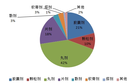 图2-2-1 以黄连为原料的已有药典标准的上市中成药剂型分布