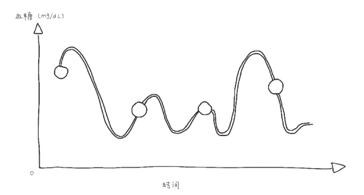 一开始,朋友们听到我的话一脸茫然。显然,我必须找到一种更吸引人的方式来分享这些研究成果。我尝试以自己的血糖数值为例来进行科学的阐释(见图0-3)。但问题是,人们很难一开始就完全掌控身体的内部情况。