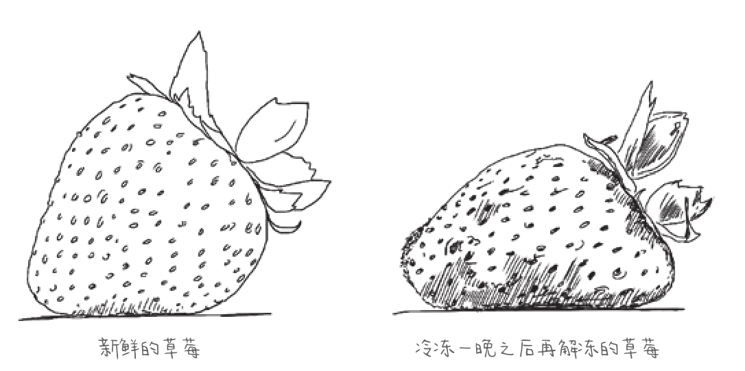 图1-8 新鲜草莓和解冻之后的草莓对比