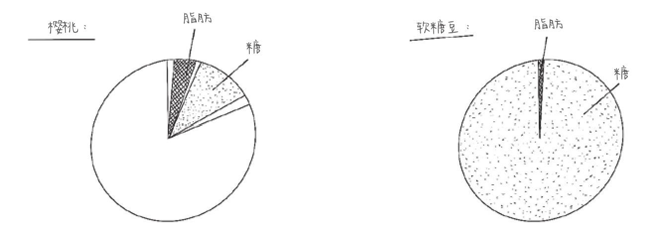 图1-12 樱桃和软糖豆中的糖对比