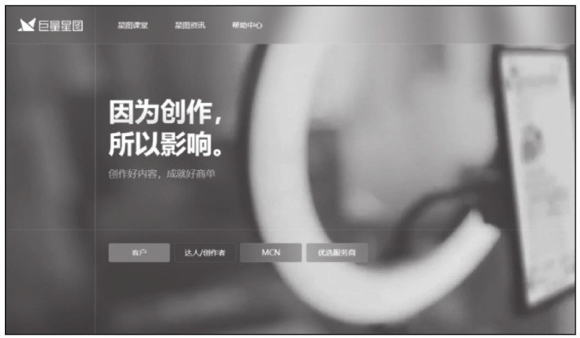例如,抖音的巨量星图平台就专门服务于广告交易,为品牌方、多频道网络(MultiChannel Network,MCN)以及创作者提供交易连接,如图1-1所示。