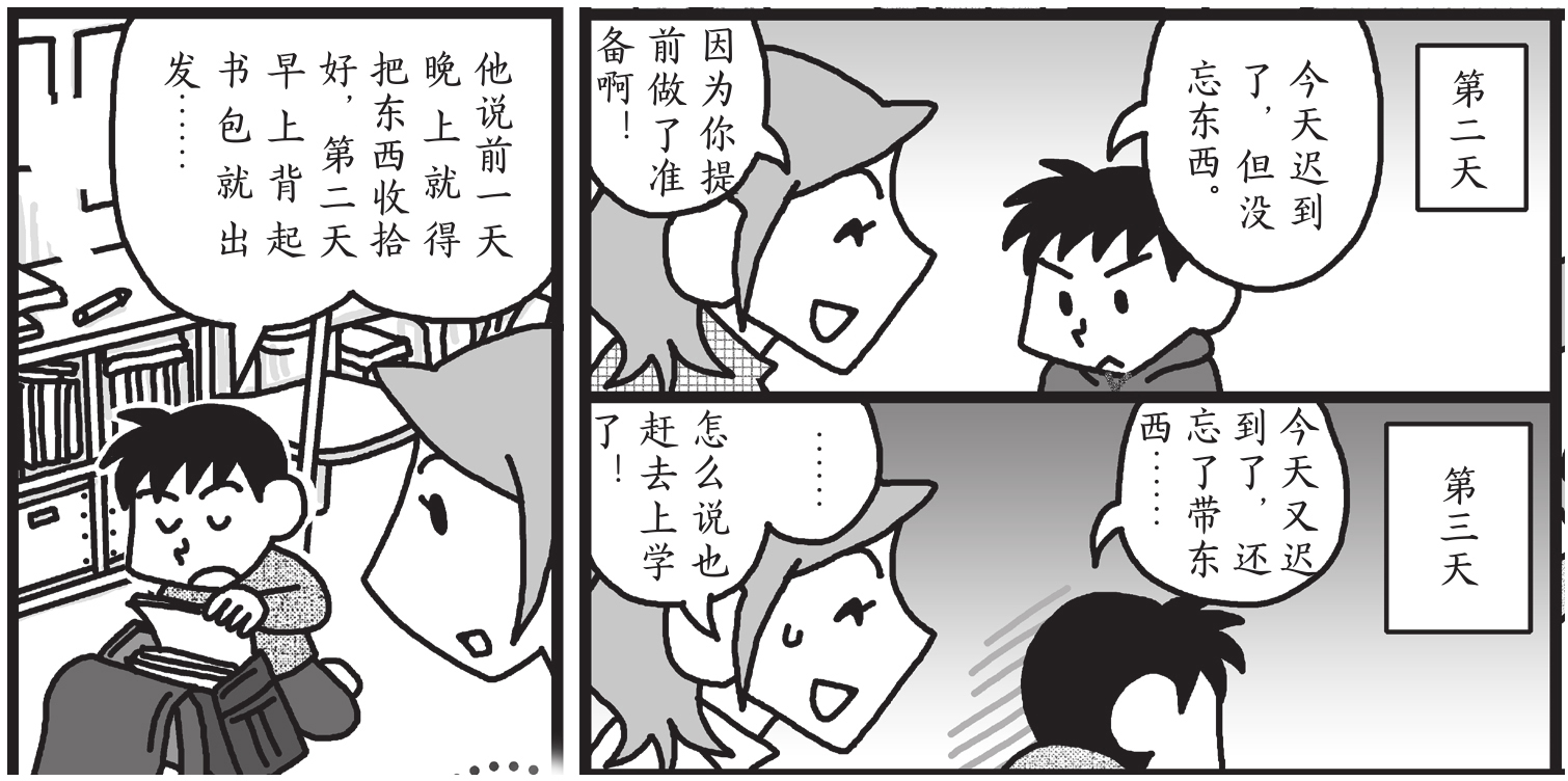 参考意见 漫画中的妈妈深雪在勇太不听话时选择闭嘴,忍住不批评,得到了回应。但不能完全照搬深雪的做法,要根据实际情况,给孩子一些适当的提醒,比如提醒孩子:“要出门了哦,已经准备好了吧?”用平和的语气提示一下。多数情况下,孩子是会有所回应的。