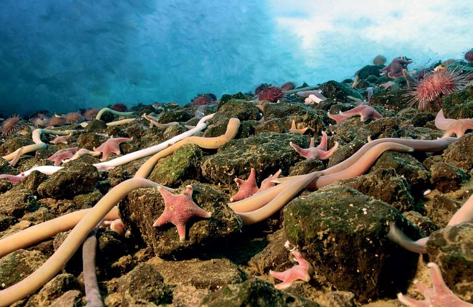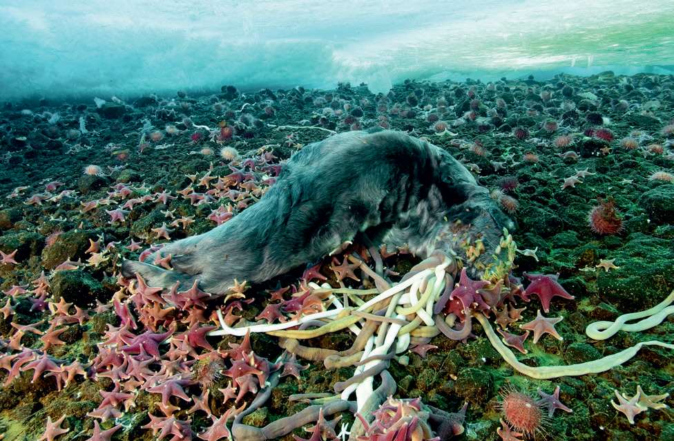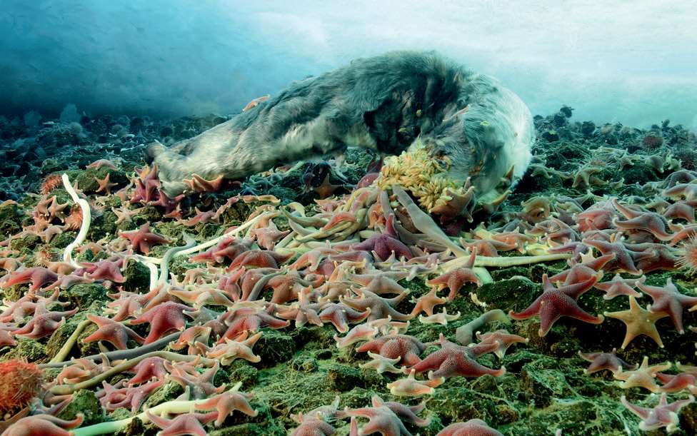 大量的海星和吻蠕虫栖息在海豹尸体上,并以此为食。巨型吻蠕虫长度可达2米,在很远处就能闻到食物的气味。