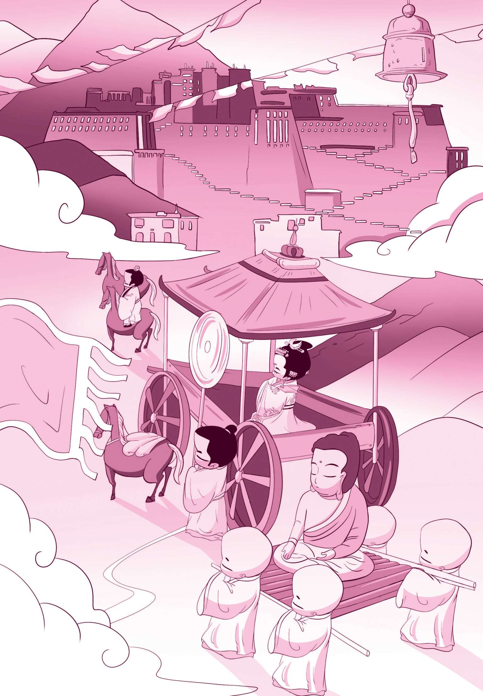 松赞干布死后,吐蕃再次出兵青海,击败了吐谷浑并占其土地,严重威胁了唐朝边疆的安全。高宗朝,唐、蕃之间爆发大非川之战,5万唐军被吐蕃打得几乎全军覆没。在西域,吐蕃也与唐朝展开了激烈的争夺战。直到唐中宗时,唐朝又嫁了金城公主给吐蕃赞普弃隶缩赞,双方才实现了暂时的和平。安史之乱爆发后,吐蕃趁机攻入唐朝内地。唐代宗时期,吐蕃一度攻入了长安。8世纪下半叶,吐蕃国力达到极盛,西域地区基本落入吐蕃之手,吐蕃几乎与唐朝平分天下。但长期的对外战争也消耗了吐蕃的国力,进入9世纪后,吐蕃走向了衰落。在唐穆宗时期,唐、蕃都打不动了,于是双方和解,举行会盟,史称“长庆会盟”,这次会盟的盟碑至今还屹立在拉萨的大昭寺门前。因为唐朝嫁过去了两位公主,吐蕃赞普常以“舅甥关系”来形容唐、蕃间的亲近关系。可这个外甥也真是把舅舅折腾得够呛,200多年的“相爱相杀”贯串了唐、蕃两国历史的始终。直到唐末,吐蕃王朝瓦解,一切烟消云散。