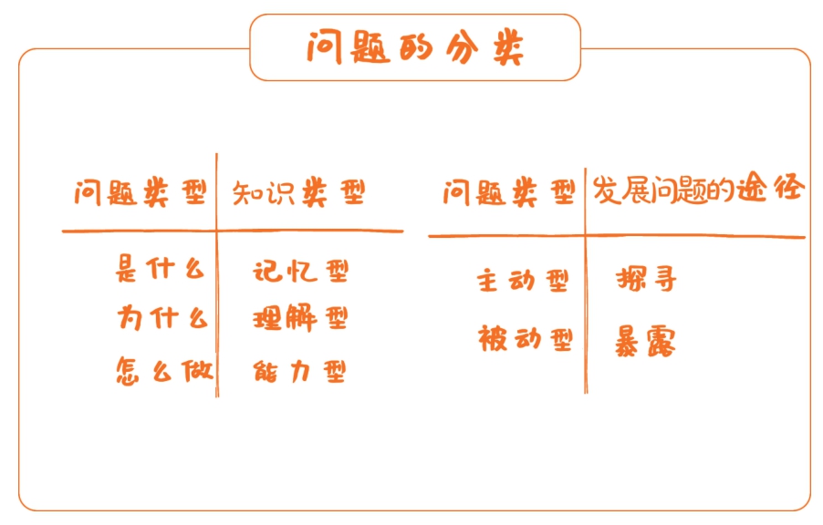 在前面,我们知道了问题的重要性,问题就是我们学习时的主要“作战对象”,所以我们有必要近距离观察在学习中一直打交道的“老朋友”。