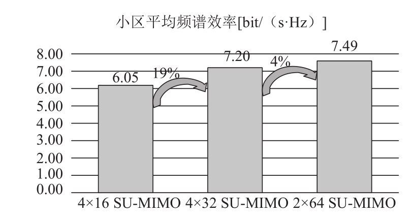 图2-8 中低频段部署下的宏小区eMBB场景的上行平均频谱效率与天线数的关系
