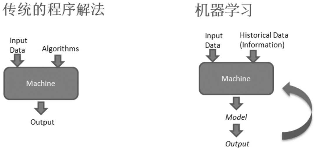 (2)机器学习不只使用输入数据,还会搜集大量的历史数据或从因特网中爬取出一堆数据,作为“饲料”。