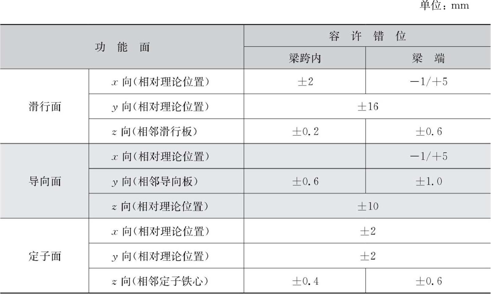 此外,高速磁浮还对轨道功能区定子面、滑行面和侧向导向面提出了几何公差和偏差要求,包括长波偏差、短波偏差、功能面不平顺度和错位、偏转等允许公差和偏差要求。各功能面及测点位置如图2-15所示。