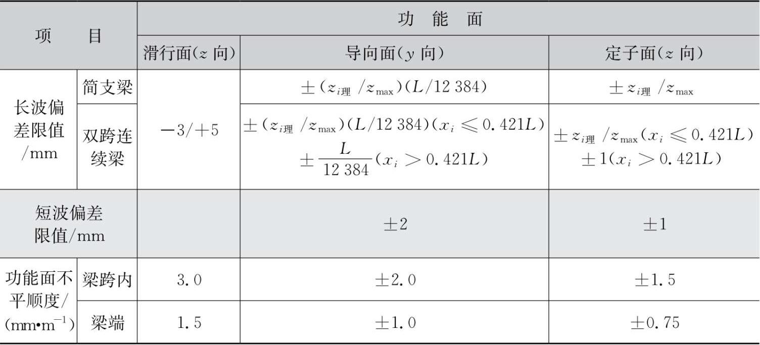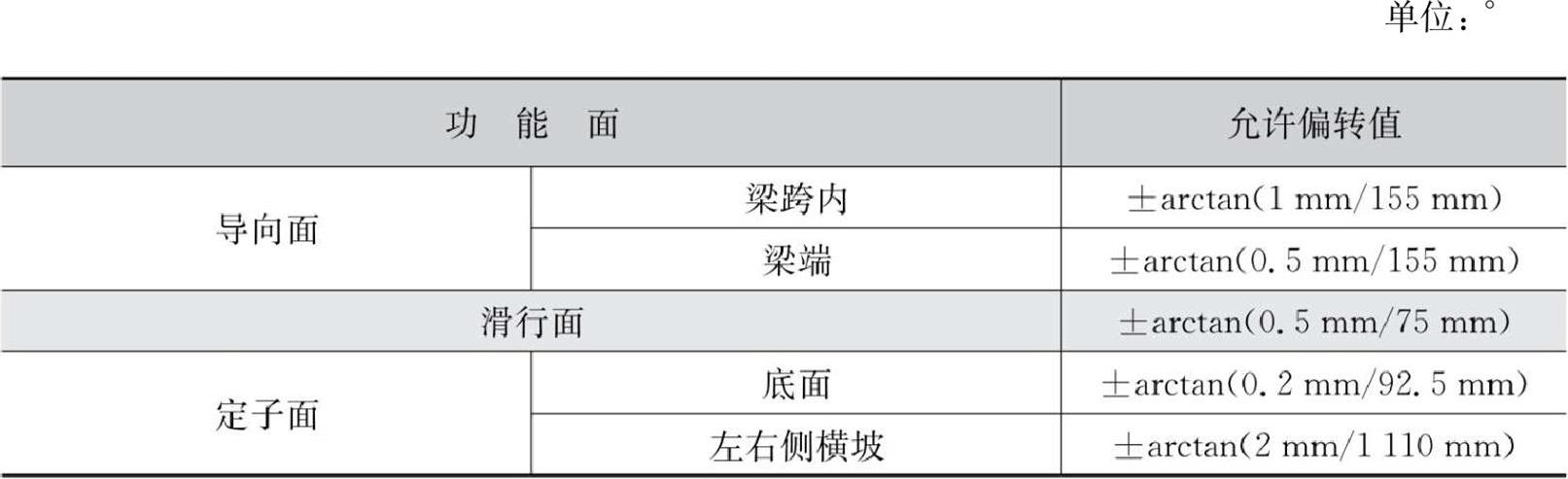 各功能面的允许偏转值不得大于表2-15所列数值。