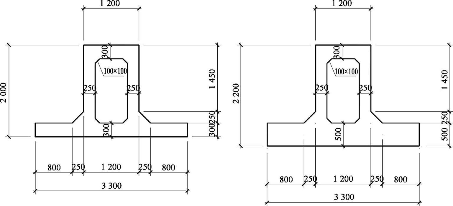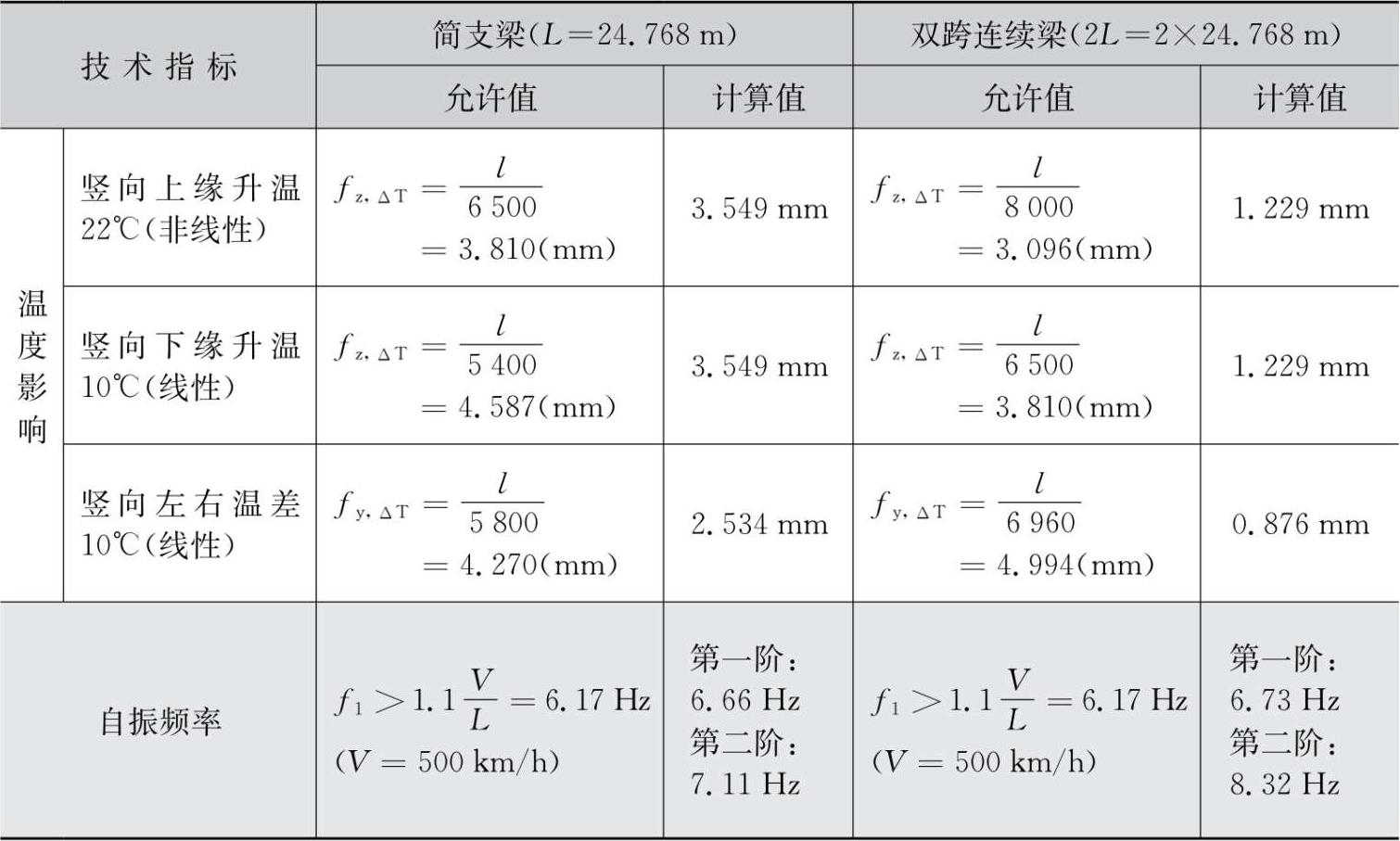 考虑到长线高架线路可能将电缆布置在双线轨道梁之间,综合考虑施工和受力要求,承重梁的底板做成等厚度,宽度为3.3m。一种典型的24.768m简支或双跨连续承重结构的技术性能指标见表3-1,标准横断面如图3-12所示。