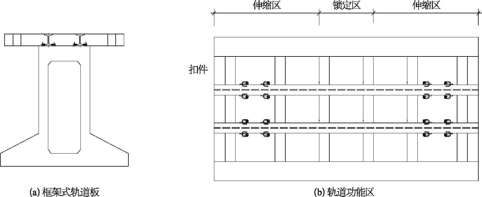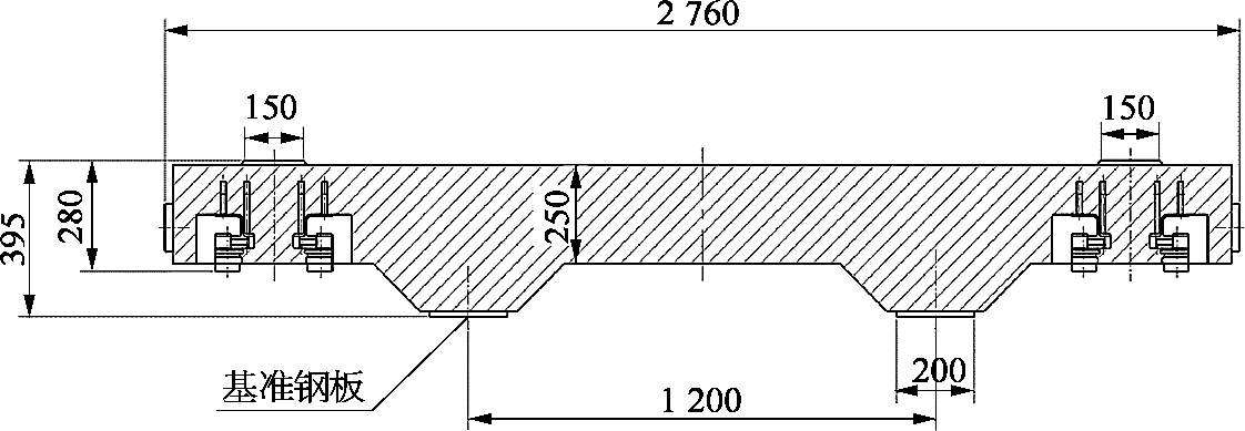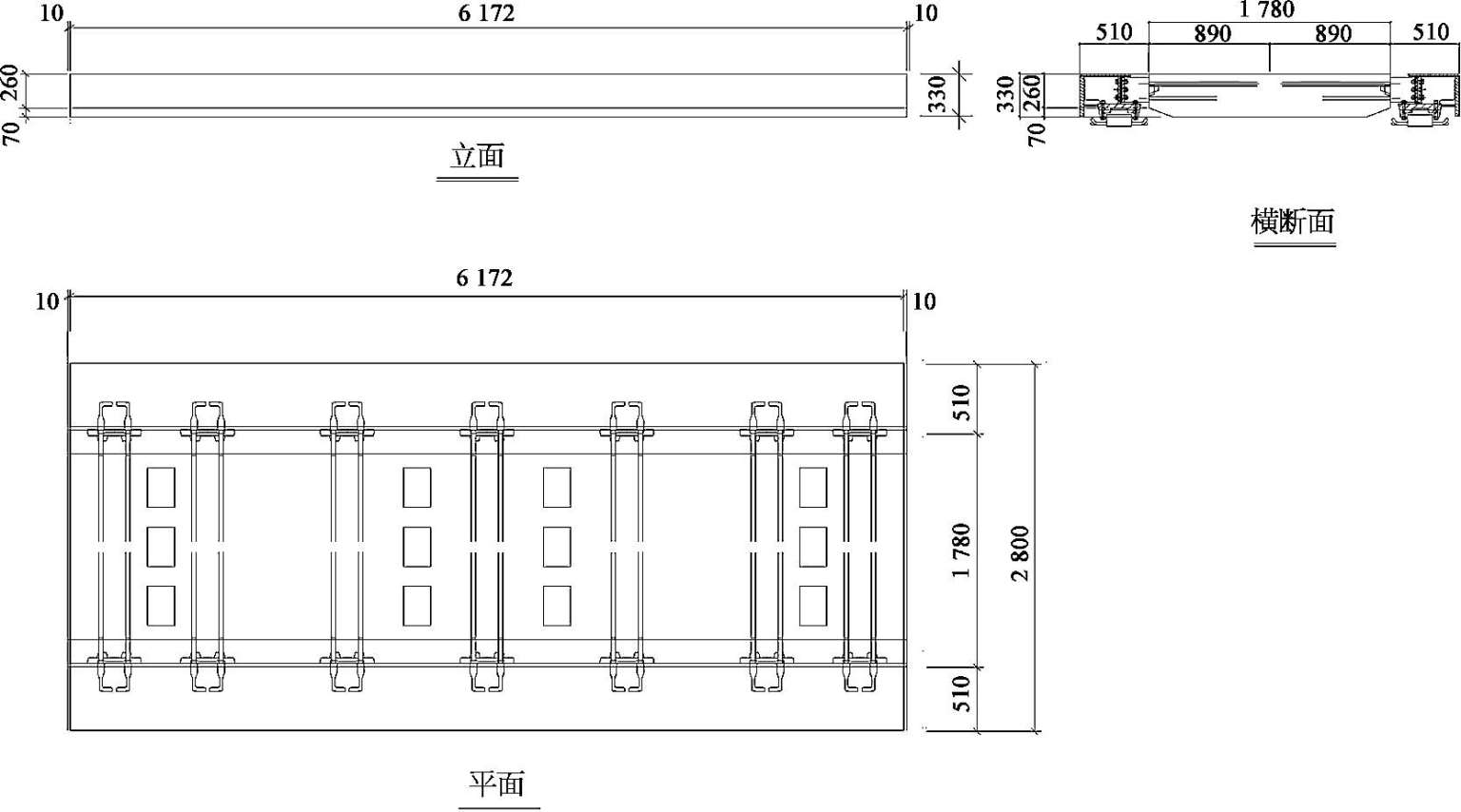 钢轨道板可将主体钢结构与功能区设计成为整体,为全焊钢结构,制作完成后进行功能面的机加工,其构造如图3-16所示。为了减轻结构的重量,降低制造难度,还可以采用钢框架形式,如图3-17所示。