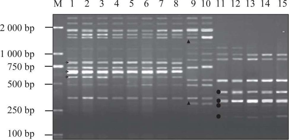 M :DL2000 DNAMarker ;1 :YC2 ;2 :YC3 ;3 :YC4 ;4 :YC5 ;5 :YC6 ;6 :YC8 ;7 :YC9 ;8 :YC10 ;9 :HN3;10:HN4;11:YZ2;12:YZ3;13:YZ5;14:YZ6;15:YZ7
