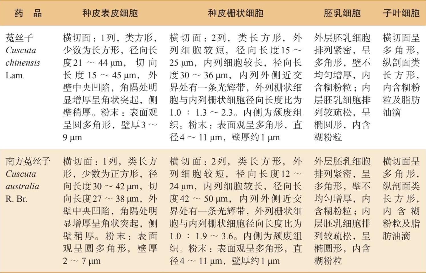 表 1 菟丝子与南方菟丝子横切面和粉末显微特征比较