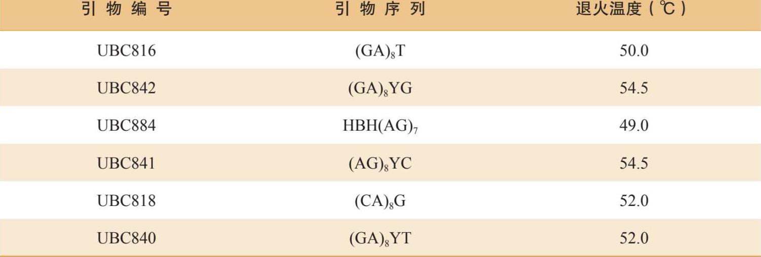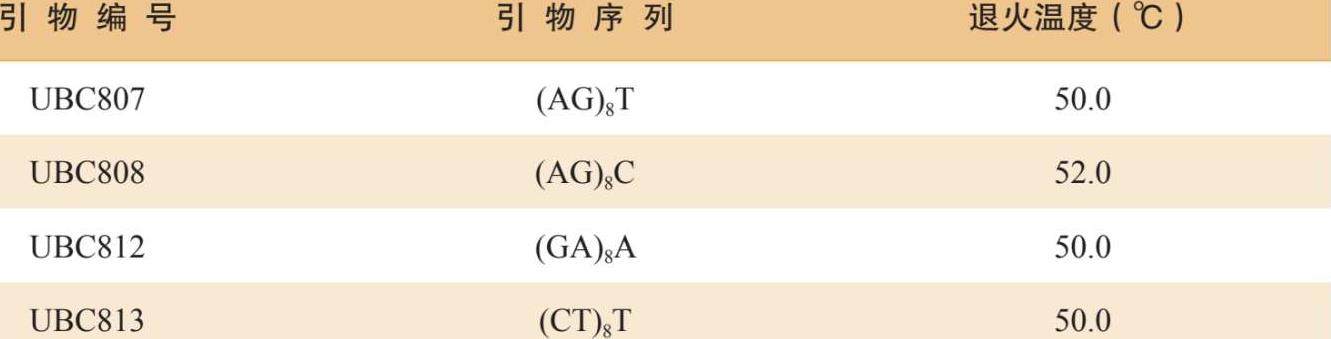 简单重复序列区间标记技术(inter-simple sequence repeat, ISSR)是由Zietkeiwitcz等于1994年首次提出,是一种在PCR反应体系上发展起来的分子标记技术。其基本原理是在真核基因组中广泛存在的简单重复序列SSR基础上,利用SSR自身来设计引物,在SSR的3′端或5′端锚定1~4个核苷酸,使特定位点发生退火反应并对反向排列SSR间的DNA片段进行PCR扩增,之后进行电泳、染色,从而分析不同样品间ISSR标记的多态性,实现不同样品的鉴别。结合了SSR标记和RAPD标记技术的优点,呈现价格低、重复性高且操作简单的特点,且在无需预先知道DNA序列信息的前提下即可快速稳定地获取大量的信息,因此在种质资源遗传多样性与结构研究、遗传图谱构建、种质资源研究等方面得到越来越广泛的应用。