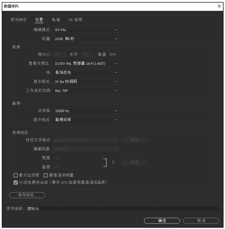 若需要修改预设的序列参数或需要自定义序列,可在“设置”选项卡中完成,如图2-5所示。其中,部分常用选项介绍如下。