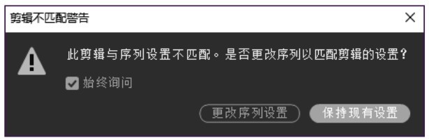 需要注意的是,如果素材与新建的序列不匹配,将打开图2-4所示的“剪辑不匹配警告”对话框,此时单击