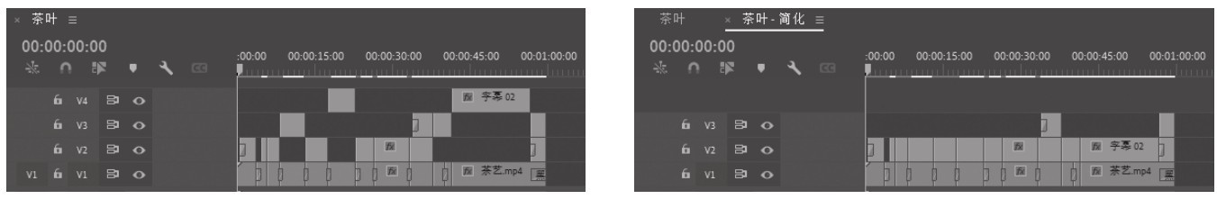 按钮,将会新建一个简化后的序列副本,如图2-10所示。此时,“时间轴”面板中也会自动打开简化后的序列。图2-11所示为简化序列前后的对比效果。