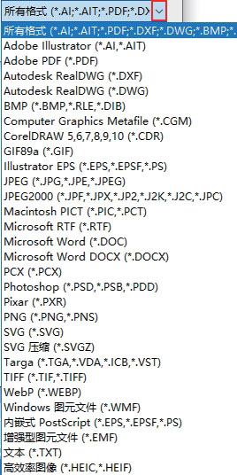 在“格式”下拉列表中,用户可以看到软件支持的文件格式,如图1-58所示。