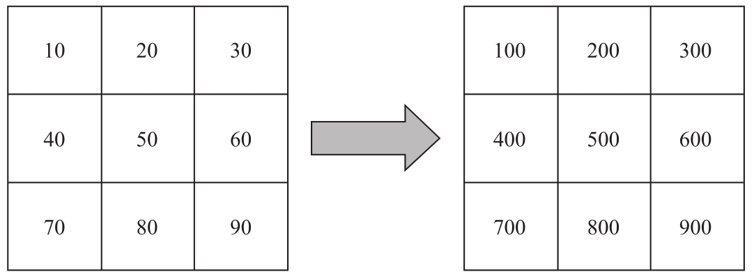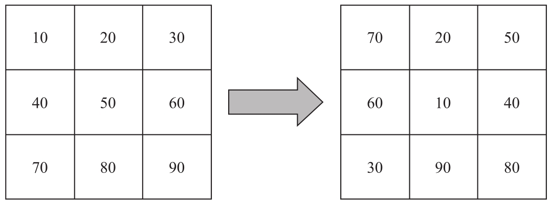 基于结构的DEM信息伪装技术是从高程矩阵的结构整体出发进行DEM信息伪装的方法。在整个处理的过程中,不关注其中具体的某个高程数值,而是通过将高程矩阵划分为若干单元,依次进行信息伪装,如图2.9所示。这类算法有时改变的只是高程矩阵中各个值的位置,通过将地形特征进行变换移位以达到虚虚实实的伪装效果。伪装前后的高程矩阵一般会存在某种隐含关系。常用的方法有基于矩阵论和基于分形理论等方法。基于结构的DEM信息伪装算法简单,一般不会涉及复杂的数学计算,实现容易、快捷,大大节约了时间成本。但是部分算法的安全性能还有待加强。