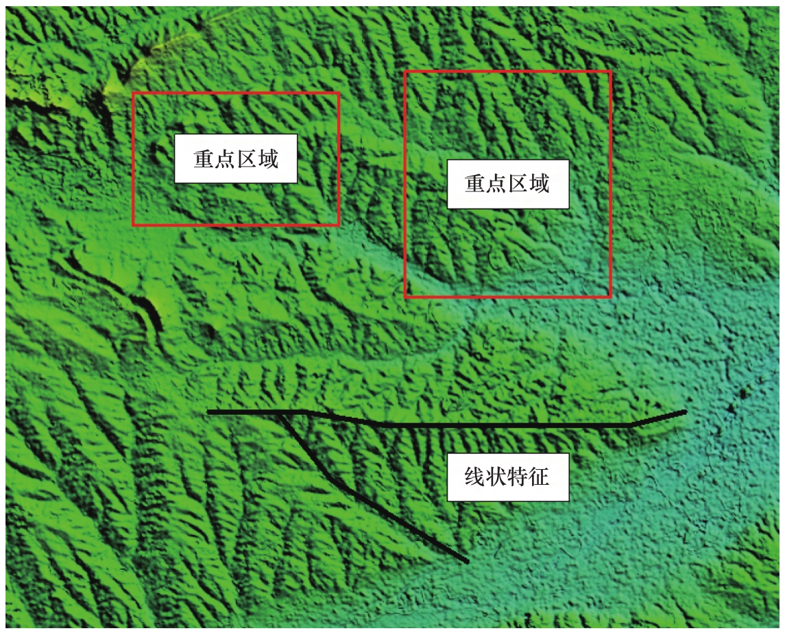按照伪装对象的形态特征,DEM的局部伪装又可以分为重点区域伪装和线状特征伪装两种类型。重点区域伪装是将原始数据的某一区域作为重点保护对象,并对其进行伪装处理,一般该区域直接包含在原始数据中。例如,需要保护某一军事基地的地理位置不在公开信道中随意传播,就要进行局部重点区域的伪装。线状特征伪装是将原始数据中的某一类线状特征作为重要信息,并对其进行伪装处理,线状特征一般是隐含在原始数据中的内容。例如,需要隐匿数据中的分水合水线等对军事活动具有重要价值的地形特征,就要进行局部线状特征的伪装。图2.8是地形数据中重点区域和线状特征的示例。