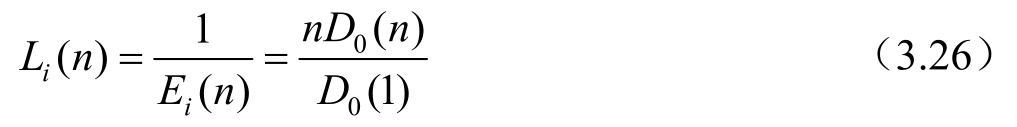 积累 n 个脉冲对信噪比的改善倍数 nE i ( n )称为积累改善因子,也可视为非相参脉冲串积累的有效脉冲数。在理想情况下,相参脉冲串积累的效率 E i ( n )=1,故改善因子为 n 。而非相参脉冲串积累的效率始终小于1,因此积累改善因子达不到 n 。为了便于分析,有时把 E i ( n )的倒数定义为积累损失,即