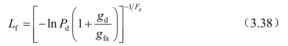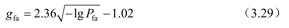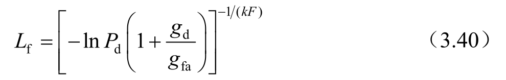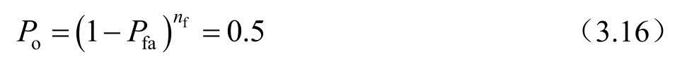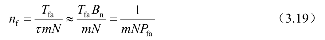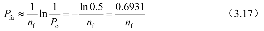式(3.16)中,虚警数 n f 表示虚警时间 T fa 内出现虚警的概率为0.5时的独立检测机会数(简称虚警数)。