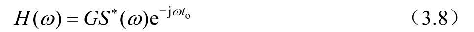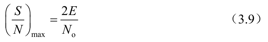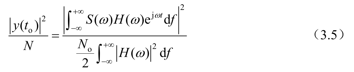 式3.8中, S * ( ω )是 S ( ω )的复共轭; G 是滤波器的增益系数,为了便于分析,可取 G =1; t o 是信号通过滤波器的附加延迟。因此,匹配滤波器输出的最大功率信噪比为