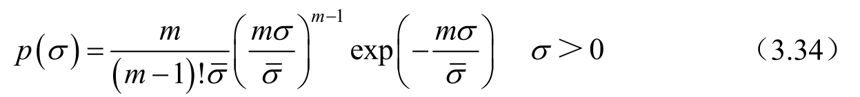 可将SWL-1和SWL-2目标起伏模型视为目标由大量统计独立的散射体组成,每一个散射体散射的能量只是后向散射总能量的一小部分,其合成RCS服从 χ 2 分布,参量 m =1,这实际上就是瑞利分布或指数分布。经验表明很多目标不能分解为由简单的散射体组成,但仍然服从 χ 2 分布,只是参量 m ≠1。