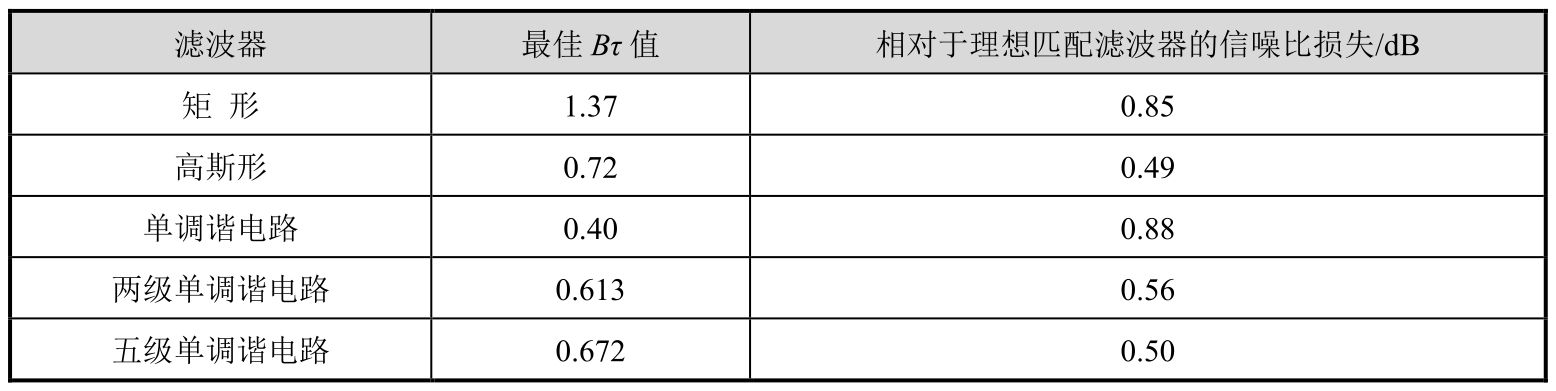 注: B 为滤波器的半功率带宽, τ 为信号脉冲宽度。