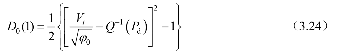 式(3.18)中, n 为虚警时间内参与检测的脉冲宽度 τ 的数目, m 为相干积累的脉冲数(≥1), N 为非相干积累的脉冲数(≥1)。
