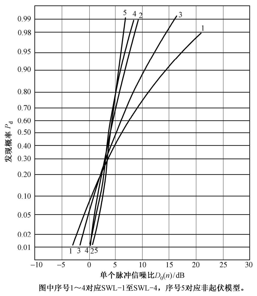 。为了便于比较,这里将没有回波起伏的目标归于第五类。当计算作用距离时,可以根据给定的检测概率