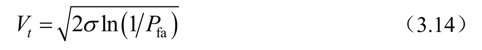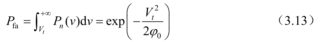 虚警概率是指仅存在噪声时,噪声电平超过 V t 的概率,因此也可以用噪声电压超过 V t 的平均时间与平均虚警时间之比来表示,即