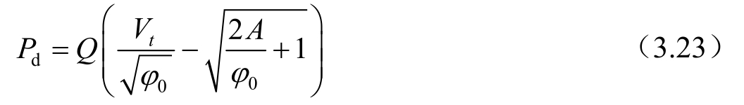式(3.22)可以确定 P d 随I 0 ( z )积分的变化规律,在 V t 给定的情况下,它是一个随I 0 ( z )积分单调递增的函数。为了避免复杂的数字积分,可用 Q 函数近似表示为